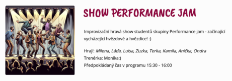 Improvizační hravá show studentů skupiny Performance jam - začínající vycházející hvězdové a hvězdice! 🙂