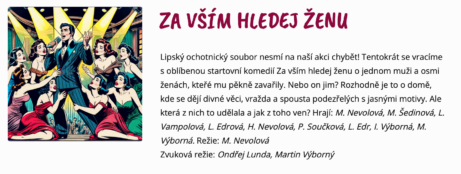 Lipský ochotnický soubor nesmí na naší akci chybět! Tentokrát přijdeme s komedií Shakespeare v kostce.